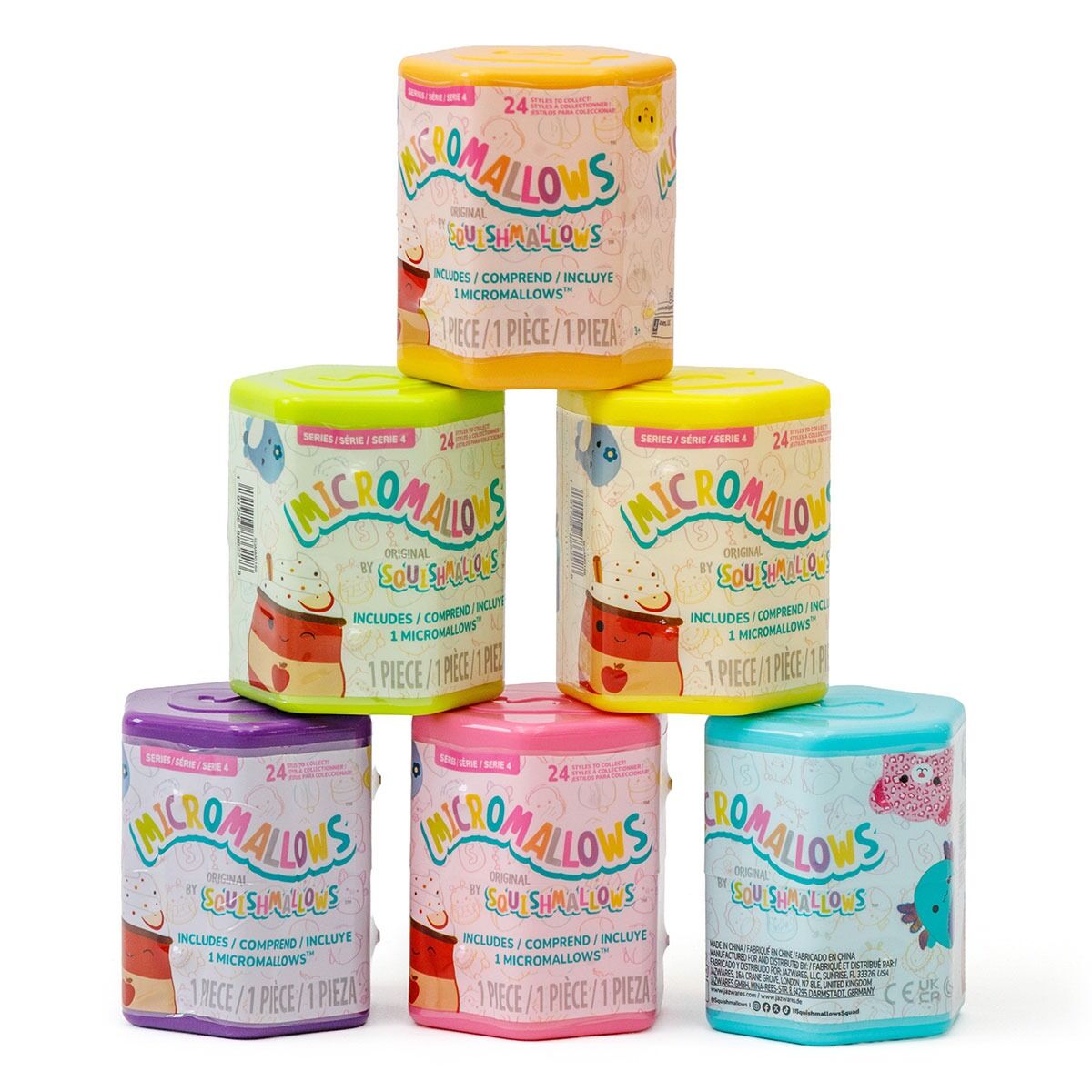 Micromallows are tiny but mighty! These collectable-and-connectable Squishmallows Blind Capsules each contain one Micromallows plush. From Oskana the Fried Chicken Drumstick to Jiovanne the Cat—the plush might be small but the possibilities are endless! Only by Original Squishmallows. Join the Squad! Includes: (1) 2.5-inch Micromallows Plush (1) Connectable Plastic Capsule